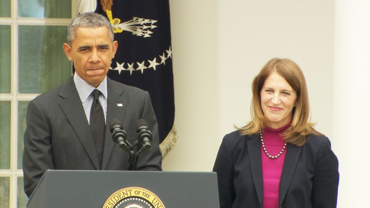 “Under Kathleen's leadership, her team at HHS turned the corner, got it fixed, got the job done and the final score speaks for itself — there are 7 and a half million people across country that have security of health insurance, most of them for the very first time and that's because of the woman standing next to me here today and we are proud of her for that,” Obama said. “That's an historic accomplishment.”