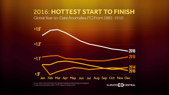 The National Oceanic and Atmospheric Administration and NASA both say 2016 was the hottest year in recorded human history.