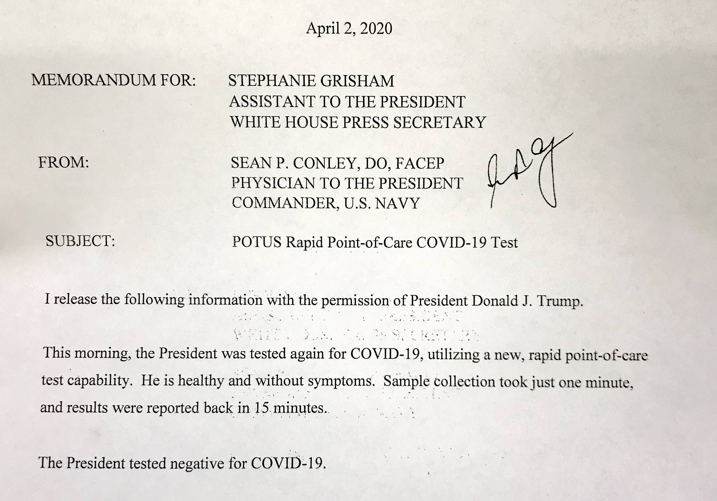 "As the Physician to the President and White House Operations continue to protect the health and safety of the President and Vice President, starting today anyone who is expected to be in close proximity to either of them will be administered a COVID-19 test to evaluate for pre-symptomatic or asymptomatic carriers status to limit inadvertent transmission," Judd Deere, White House deputy press secretary, said in a statement.