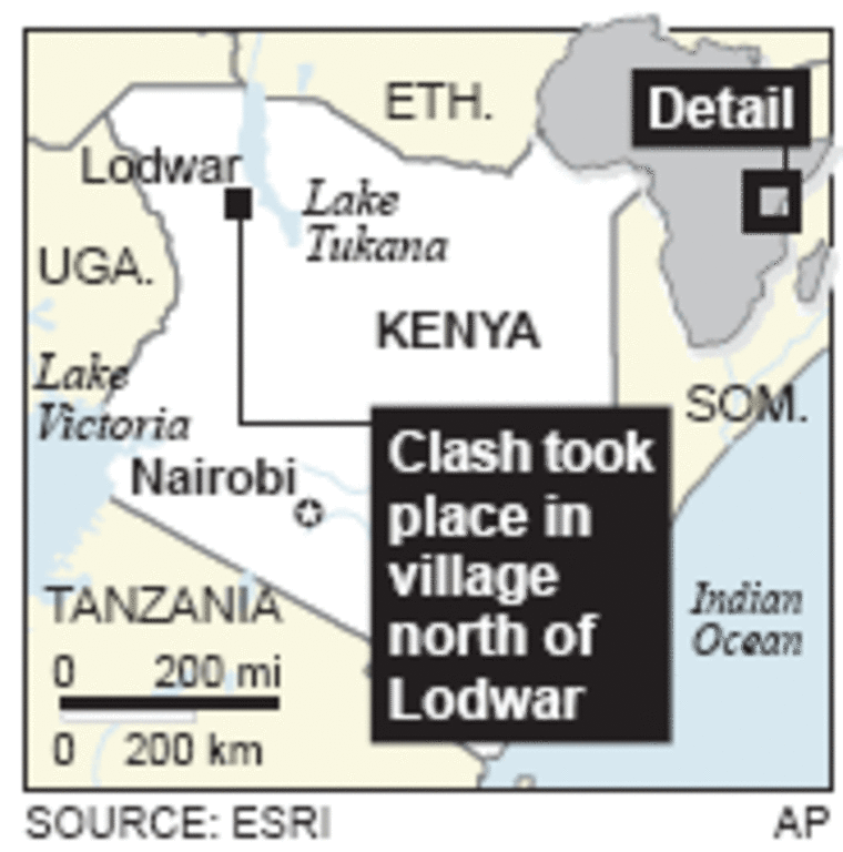 The clashes took place in the remote village of Lokamarinyang along the Kenya-Ethiopia border, about 260 miles north of the regional capital of Lodwar, said Lucas Ariong, an aid worker in the area.