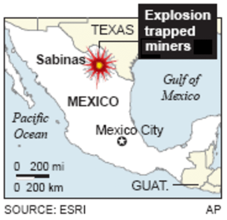 On Tuesday, the side of this road was lined with hundreds of parked cars and pickups. They belong to relatives of the 65 trapped miners who have driven from across the northern state of Coahuila to join in a desperate vigil.