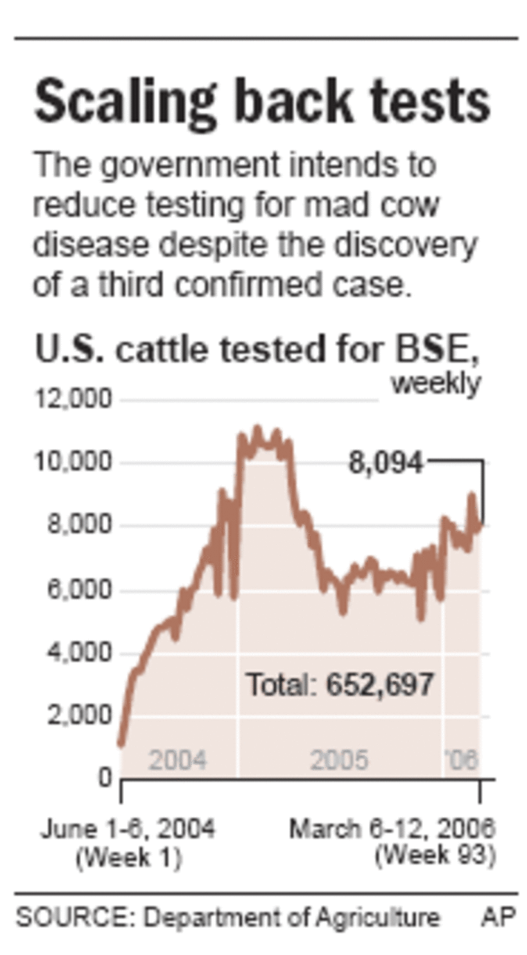 Still, a reduction in testing has been in the works for months. The department's chief veterinarian, John Clifford, mentioned it when he announced the new case of mad cow disease.
