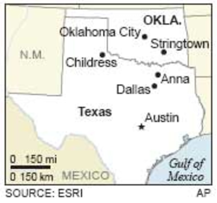 At least six homes were destroyed in Westminster, a community of 420 people. A tornado also hit nearby in Anna, a town of 6,500 residents, where residents said the sirens sounded.