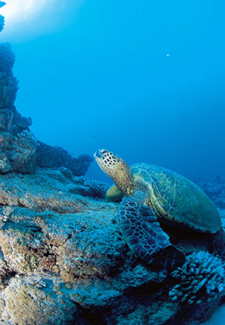 You will need a dive boat to reach crescent-shaped Molokini Crater and the satellite island of Lanai, but these have elements that make them well worth the trip, from the teeming tropicals of the crater to the deep blue hush of light-streaked First and Second Cathedrals to the pyramid butterflyfish that lend their name to the seamount pinnacle known as Pyramids.