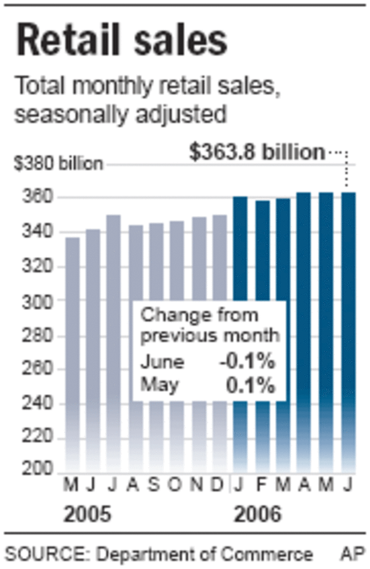 Still, the $363.8 billion estimated to have been rung up in June marked a 5.9 percent increase from the same month in 2005.
