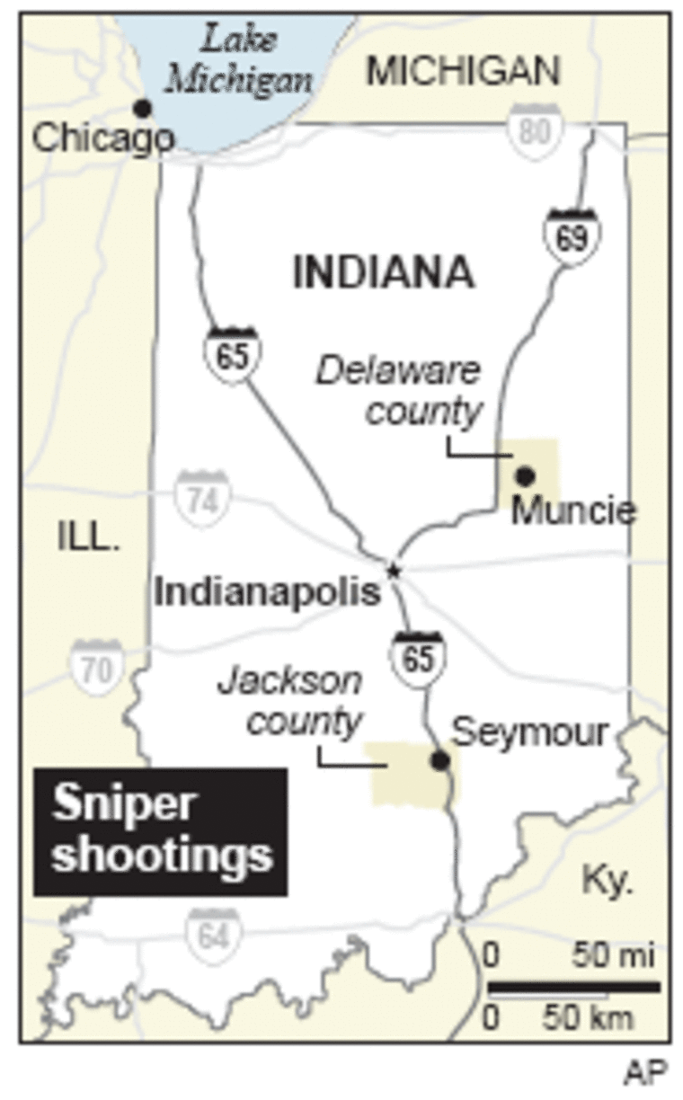 Police believe that after the hunting trip argument, Blanton drove to a nearby overpass outside Seymour early Sunday, aimed his rifle over the trunk of his vehicle and fired at trucks on Interstate 65 about 60 miles south of Indianapolis.