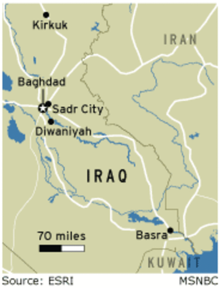 Diwaniyah, 80 miles south of Baghdad, is a Shiite-dominated city where the influence of the Mahdi Army has been gradually increasing. It already runs a virtual parallel government in Sadr City, a slum in eastern Baghdad.