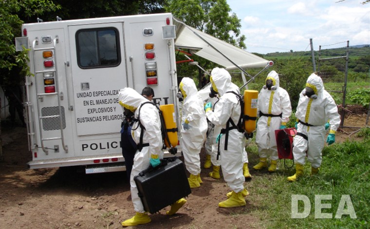 Within weeks, the Mexican authorities seized about 220 pounds of finished meth at a "super lab" near Guadalajara. Mexican officials later said the chemicals used to make it had been imported legally from China, but did not explain how they were obtained by the meth producers.