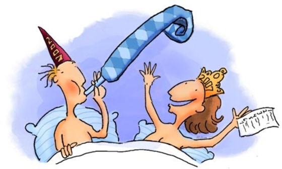 This is a sex column though, so I suppose I should offer some sex-related resolutions. Since our mailbag has bulged in the past year with suggestions — complaints about lovers, really, but let’s be nice — and since self-improvement is the heart of all New Year’s vows, here is a menu of seven resolutions for 2007 that will go at least a little way toward making us the high rpm love machines we know we would be if only our partners were magically turned into Eva Longoria or that guy from "Grey’s Anatomy."