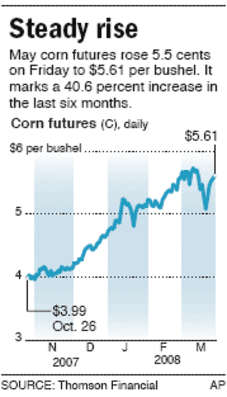 If they choose to plant as much corn as possible, prices that have soared to record highs above $5 a bushel could stabilize. But if many farmers rotate their plantings to other crops such as soybeans, or the season is disrupted by bad weather or drought, the price of this key ingredient could soar even further.