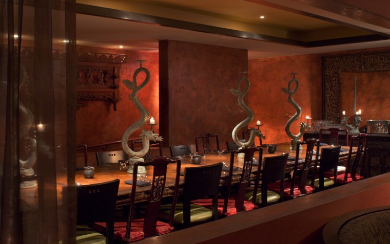 Many results astound. The top-floor view down The Strip apparently wasn’t enough of a stunner or conversation piece for Alain Ducasse’s Mix at THEHotel at Mandalay, so they tossed in that $500,000 chandelier with 13,000 pieces of blown glass to envelop indoor diners. At the MGM Grand, the much-admired $6 million Japanese hotspot Shibuya greets guests with a 50-foot video wall behind the main bar as well as tables partitioned by striking floor-to-ceiling bamboo for a forest-like effect. Even the understated elegance of Fleur de Lys at Mandalay Bay has its design treasure: a leaf-shaped wall installation crammed with more than 3,500 fresh pink roses that accent colors in the restaurant’s china.