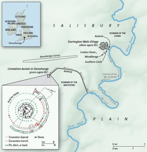 A National Geographic map locates Stonehenge and surrounding archaeological sites.