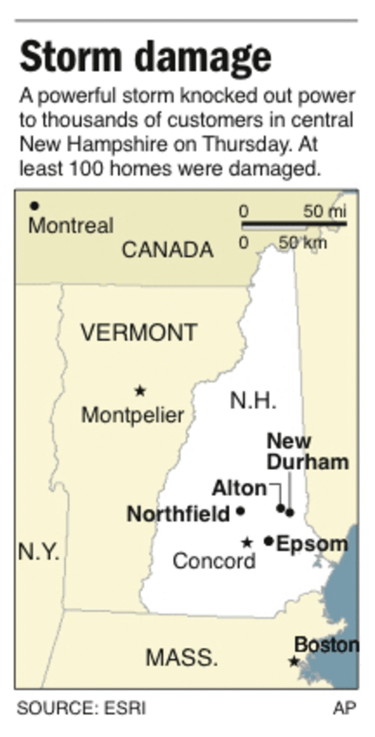 Around Northwood Lake in Epsom, about 10 homes in one area were badly damaged or destroyed by the storm, which tossed couches and refrigerators along with downed trees and other debris.