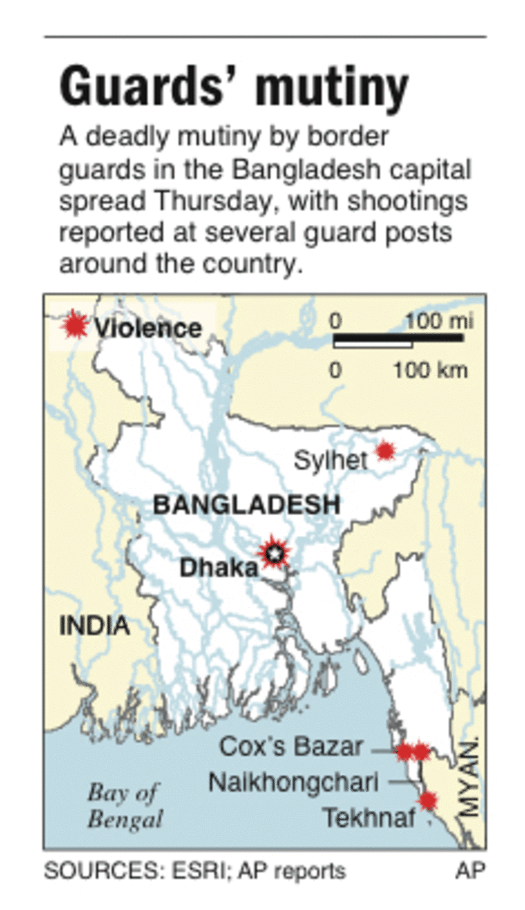 The insurrection was the result of longtime frustrations over pay for the border guards that didn't keep pace with that of the army's — highlighted by rising food prices in the chronically poor South Asian country as the global economic crisis grows. The guards make about $100 a month.