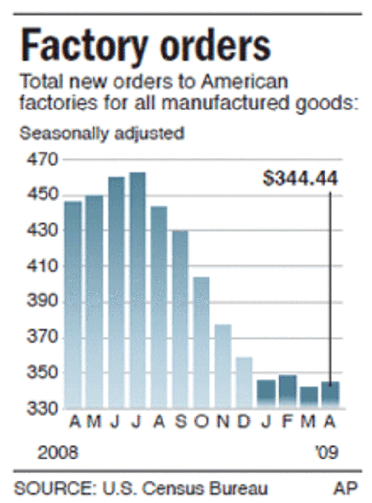 The U.S. service sector shrank last month at the slowest pace since late last year and orders to U.S. factory orders rose in April, but the improvements were incremental and economists say a real recovery will be long and slow.