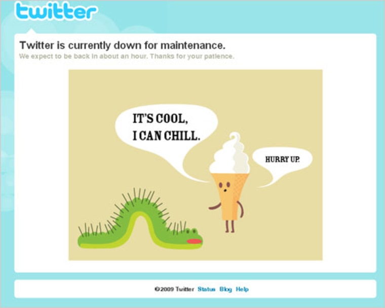 Update | 6:07 p.m. Twitter is undergoing is much-discussed maintenance right now. Here’s what users are seeing on the social-networking site’s home page right now: