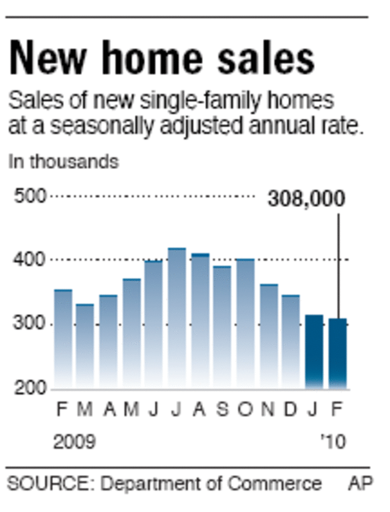 That news followed a report a day earlier that sales of existing homes fell for the third straight month in February, to their lowest level since July.