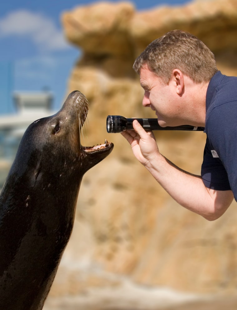 You watch them, because you have to find them before you can fix them, explained Aquarium of the Pacific veterinarian Lance Adams, who is also known as a "wet vet" or "aqua doc."