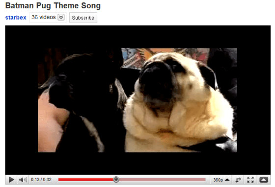 "Except, in my head, he sings it. Because I am tone-deaf and can't really sing, so basically hitting the right words at the correct time with a vague sense of rhythm is good enough for me. By which I mean to say: I very sloppily and hastily cut the pug into the Batman theme song, because I am very, very, very easily amused."
