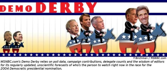 As New Hampshire Democrats and independents venture out in the frigid cold and snow to vote in their presidential primary, Massachusetts Sen. John Kerry holds Demo Derby's lead over former Vermont Gov. Howard Dean.