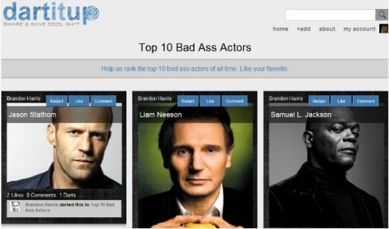 The site is only 3 days old, and new features will be added shortly. Harris says Dart It Up will integrate Facebook so members can post activity to their timelines. The team is working on an iPhone app so guys can dart stuff on the fly, and it'll add a points system to fuel competition. Eventually, private boards will be available as well as public ones.