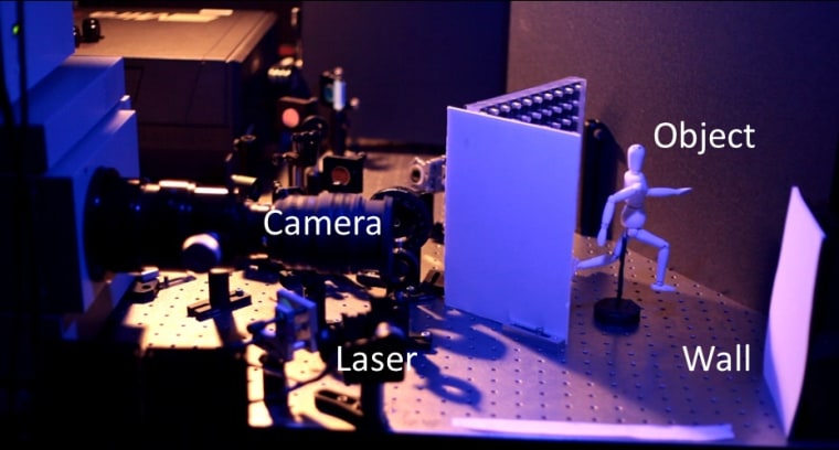 Using a special algorithm to analyze when the returning photons arrive and checking them against the reference beam, the scientists were able to reconstruct an image of the object they were trying to see. Velten noted that when analyzing the photons, the ones that hit an object in a room will return sooner than the ones that bounce off a rear wall, and the algorithm accounts for that. They could even see three-dimensional objects, such as a mannequin of a running man used in the experiment.