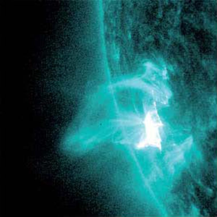 This structure apparently then became unstable, rising dramatically at speeds of more than 1.5 million mph (2.5 million kph), coinciding with the onset of a solar flare.