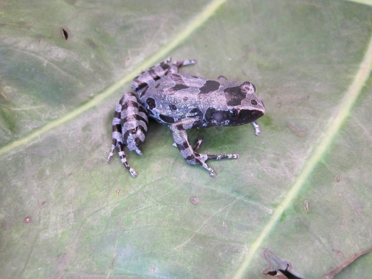 Though the researchers aren't sure how many of the tiny frogs of this species live in the geologic haven, the multiple calls they heard suggest a good-size group. "At this point, we don't have an idea of the size of this population, though I would say that we easily heard dozens of calling males in the tiny bit of stream (only one small part of a very large forest) where we found this animal," Blackburn told LiveScience in an email.