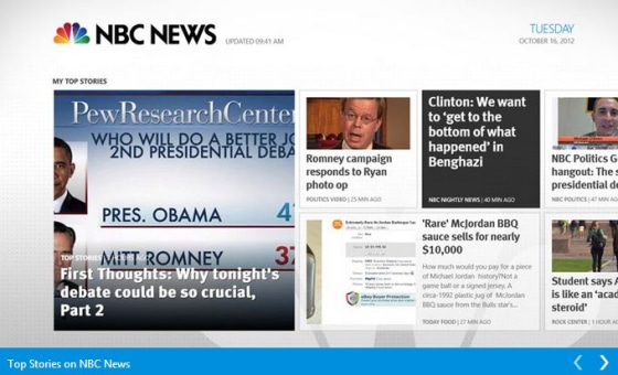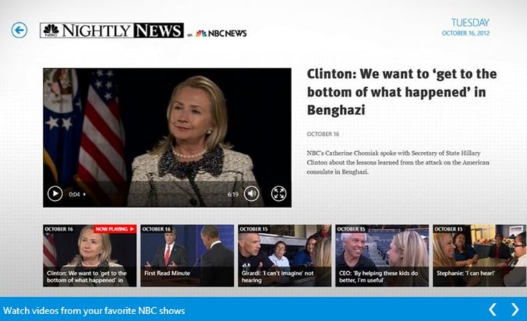 Our Chief Digital Officer, Vivian Schiller explains: "Being one of the first news organizations to have an app on the new Windows user interface reflects NBC News' commitment to making our high-quality journalism available in as many places as possible. Windows 8 enables users to consume and engage with our content in an intuitive and innovative way.”