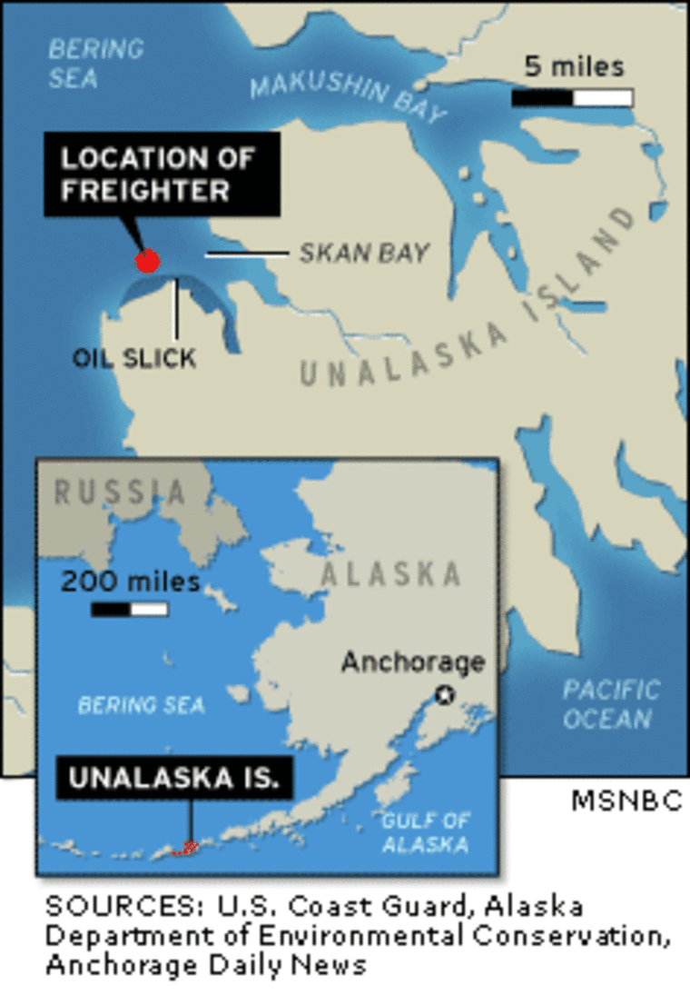 The freighter lost power in its main engine last Tuesday, and tugs and Coast Guard cutters were unable to halt its drift to Unalaska Island.