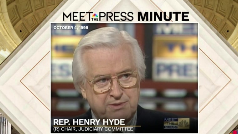 Rep. Henry Hyde (R-Ill.), House Judiciary chair and later lead impeachment manager in President Clinton's Senate trial, joined Meet the Press in 1998 and argued that U.S. politics had "suffered" as a result of the impeachment process.Dec. 17, 2023