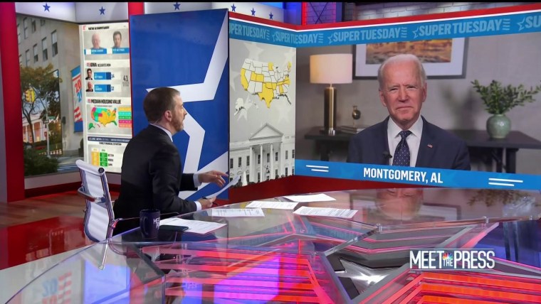 Former Vice President Joe Biden tells Chuck Todd that his campaign recorded their highest single day of online donations on Saturday.March 1, 2020