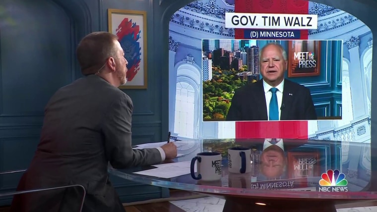 Gov. Tim Walz (D-Minn.) exclusively joins Meet the Press after saying he would support Gov. Doug Burgum (R-N.D.) in the GOP presidential primary if he were a Republican and reacts to Burgum's interview with Chuck Todd. Aug. 20, 2023