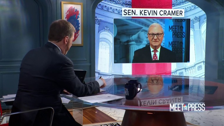 In an exclusive interview with Meet the Press, Sen. Kevin Cramer (R-N.D.) says Kyle Rittenhouse was “a kid that was in the wrong place at the wrong time, should not have had a gone probably with him.”Nov. 21, 2021