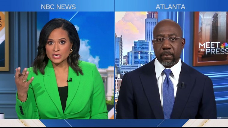 During an interview with Meet the Press, Sen. Raphael Warnock (D-Ga.) discusses how Fulton County District Attorney Fani Willis could be thrown off of former President Donald Trump’s 2020 election interference case in Georgia.March 10, 2024