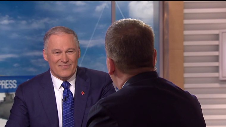 Gov. Jay Inslee (D-Wash.), tells Chuck Todd that people are starting to see that "what used to be a graph on a chart is now reality," during an exclusive interview with Meet the Press.April 14, 2019