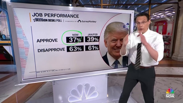 NBC News Chief Data Analyst Steve Kornacki discusses the results of a new NBC News Decision Desk poll that shows President Trump’s approval rating falling to a second-term low. NBC News Correspondent Shaquille Brewster speaks to students at Lake Michigan College about Gen Z’s feelings about the war in Iran and rising costs.April 20, 2026