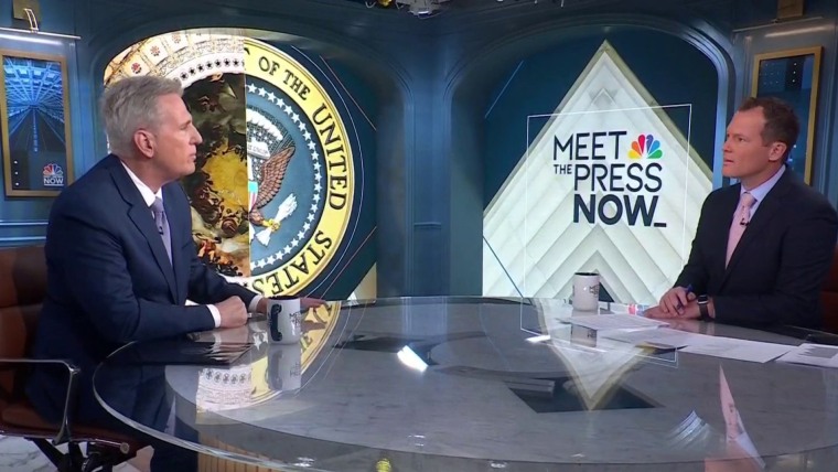 During a sit-down interview with NBC News Capitol Hill Correspondent Ryan Nobles on Meet the Press NOW, Rep. Kevin McCarthy (R-Calif.) says he's "not a candidate" for the speakership but does not say what he'd do if his conference chose him for the top job.Oct. 9, 2023