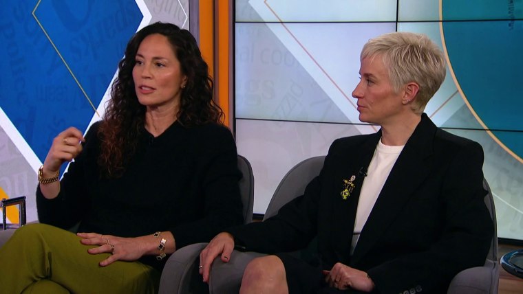 In an exclusive Meet the Moment interview, two-time Women’s World Cup champion Megan Rapinoe and four-time WNBA champion Sue Bird discuss the popularity of women’s sports with Kristen Welker, calling on corporate sponsors and companies to meet the demand of fans.Oct. 18, 2024