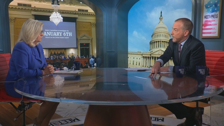 Rep. Liz Cheney (R-Wyo.) joined “Meet the Press” for an exclusive, on-set interview as the midterm elections near. Cheney discussed threats to democracy as a top issue for voters this election cycle. She said “no one of any party should vote for election deniers." Cheney specifically called out Arizona gubernatorial candidate Kari Lake (R) and Arizona Secretary of State candidate Mark Finchem. Cheney said it was “indefensible” for Republicans to place party over country. On Minority Leader Kevin McCarthy’s (R-Calif.) comments about withdrawing support for Ukraine, Cheney said it’s a “stunning" and “dangerous” thing to say. Cheney, who serves as vice chair on the Jan. 6 Select Committee, outlined the committee's preparations ahead of former President Trump’s deposition. On the question of 2024, Cheney foreshadowed a “new” conservative party emerging if Trump becomes the Republican presidential nominee.Oct. 23, 2022