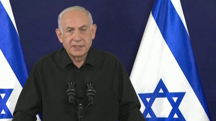 Israel Prime Minister Benjamin Netanyahu held a briefing will foreign reporters and portray the conflict as a “war about morals.” NBC News Correspondent Ellison Barber reports on the latest on Israel’s expanded ground incursion in Gaza. Oct. 30, 2023