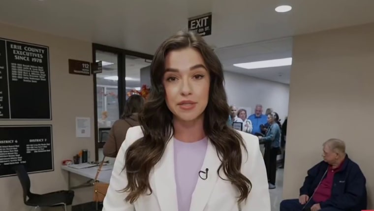 NBC News Correspondent Julie Tsirkin talks with Pennsylvania election officials in Erie County on the new ballot-counting scanner that will speed up the ballot counting process.Nov. 1, 2024