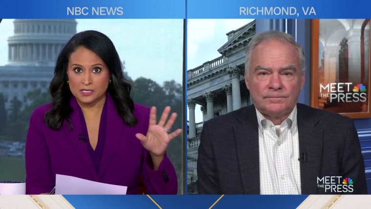 Sen. Tim Kaine (D-Va.) joins Meet the Press to weigh in on the Virginia attorney general race, after Democrat Jay Jones faces bipartisan backlash for texts he sent saying the top Republican lawmaker in the state should get “two bullets to the head.”Oct. 19, 2025