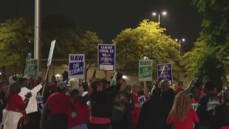 The United Auto Workers paused the expansion of their strike for the first week since it began nearly a month ago after General Motors agreed to bring battery plants into the main union contract, NBC’s Jesse Kirsch reports on Meet the Press NOW.Oct. 6, 2023