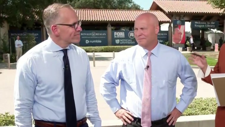 David Polyansky, deputy campaign manager for Ron DeSantis, and Marc Short, adviser to former Vice President Mike Pence, discuss their candidates’ plans for the second Republican debate.Sept. 27, 2023