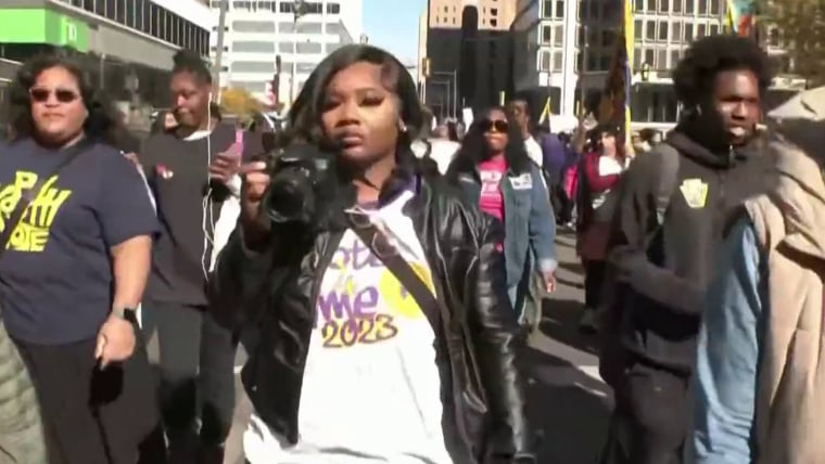 Hundreds of high school seniors rally in Philadelphia as they cast their ballot for the first time. NBC News and Stay Tuned Reporter Maya Eaglin speaks to young voters on the ground.Oct. 29, 2024