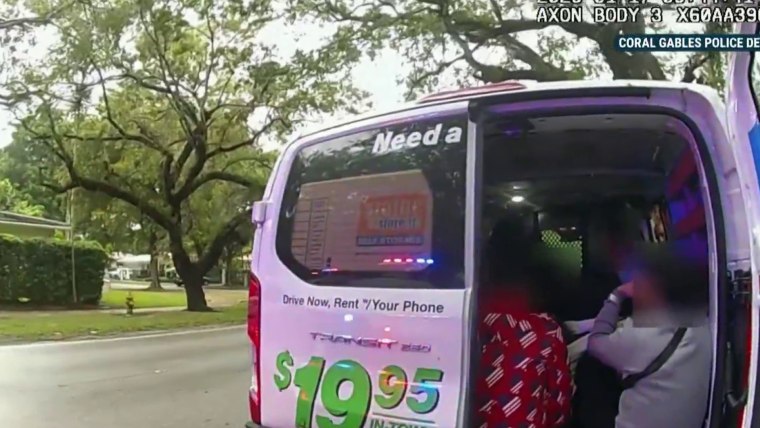Another incident appears to have occured on Dec. 19, 2024, almost a full month before Coral Gables police made their first human smuggling stop. Surveillance footage obtained by NBC News from a neighbor’s door camera shows a group of 18 Asian migrants walking into a waiting U-Haul van parked next to a waterway, as dozens of vehicles drive by. No police are seen, and there’s no record of the apparent migrants or alleged smuggler ever being apprehended.