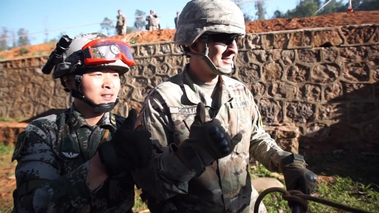 The drill was part of a joint military exercise involving soldiers from the United States and China. The objective was to hone their disaster relief skills, but the troops were also tasked with showing that the two world powers could look beyond simmering tension and political uncertainty.