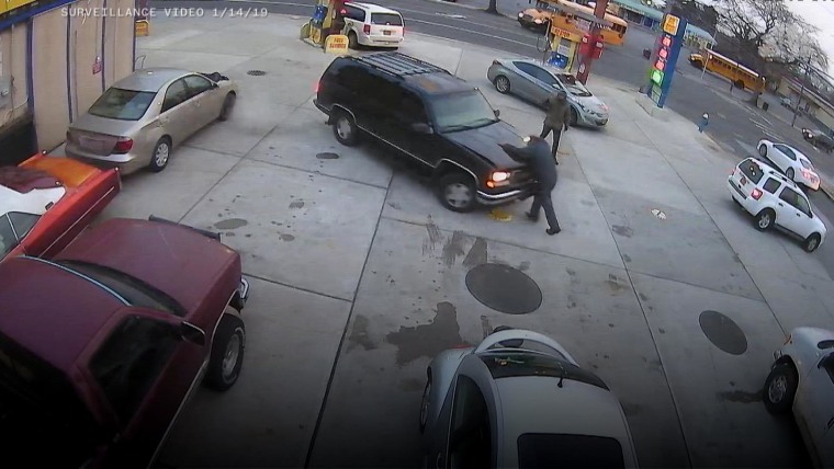 In footage captured on the gas station's surveillance video, Dagdeviren is seen standing on the side of the car by the driver's side. When the suspect starts to drive away, Dagdeviren runs around to the front of the car.