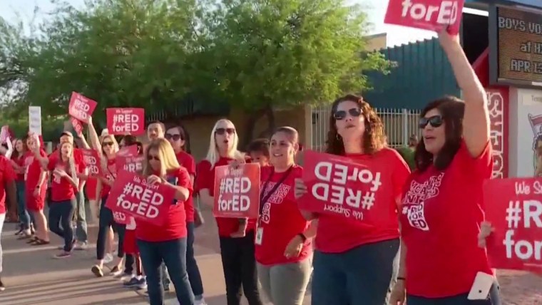 Emily, who preferred to withhold her last name, talked to NBC News while on break from a walkout in Flagstaff. She works at a continuing school where many of her students are Native American. She has been in education for seventeen years, twelve in Arizona.